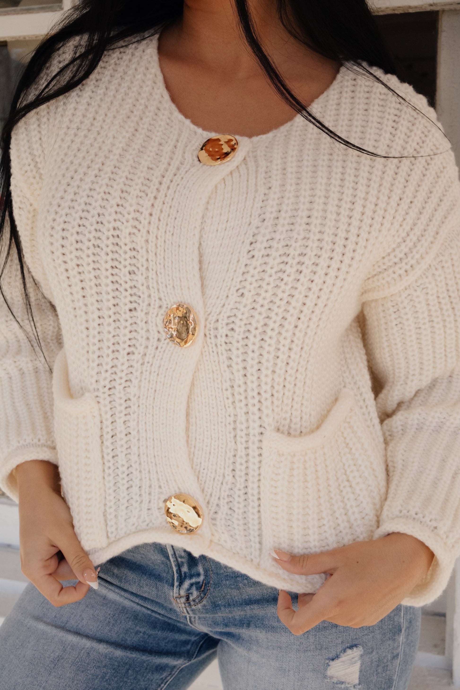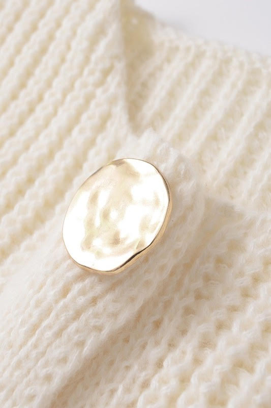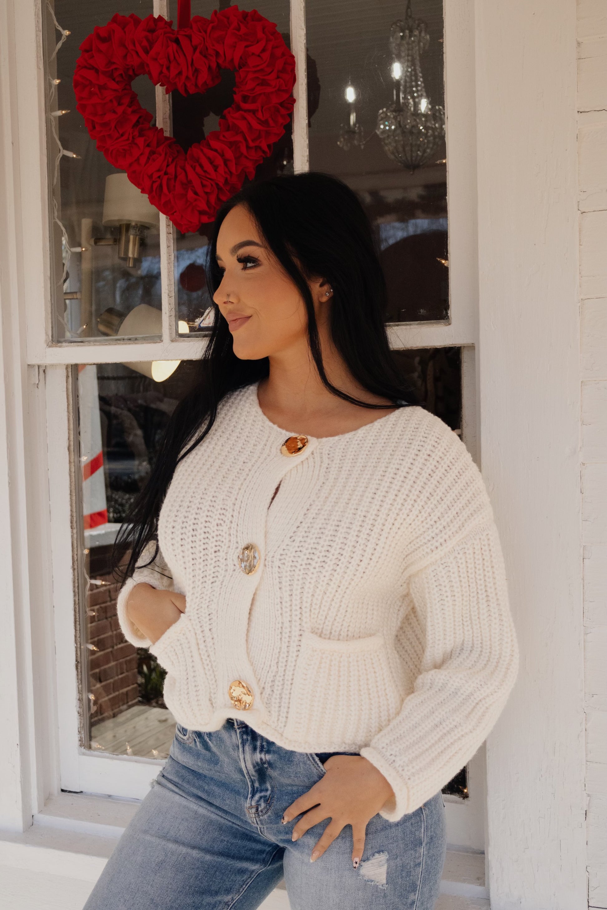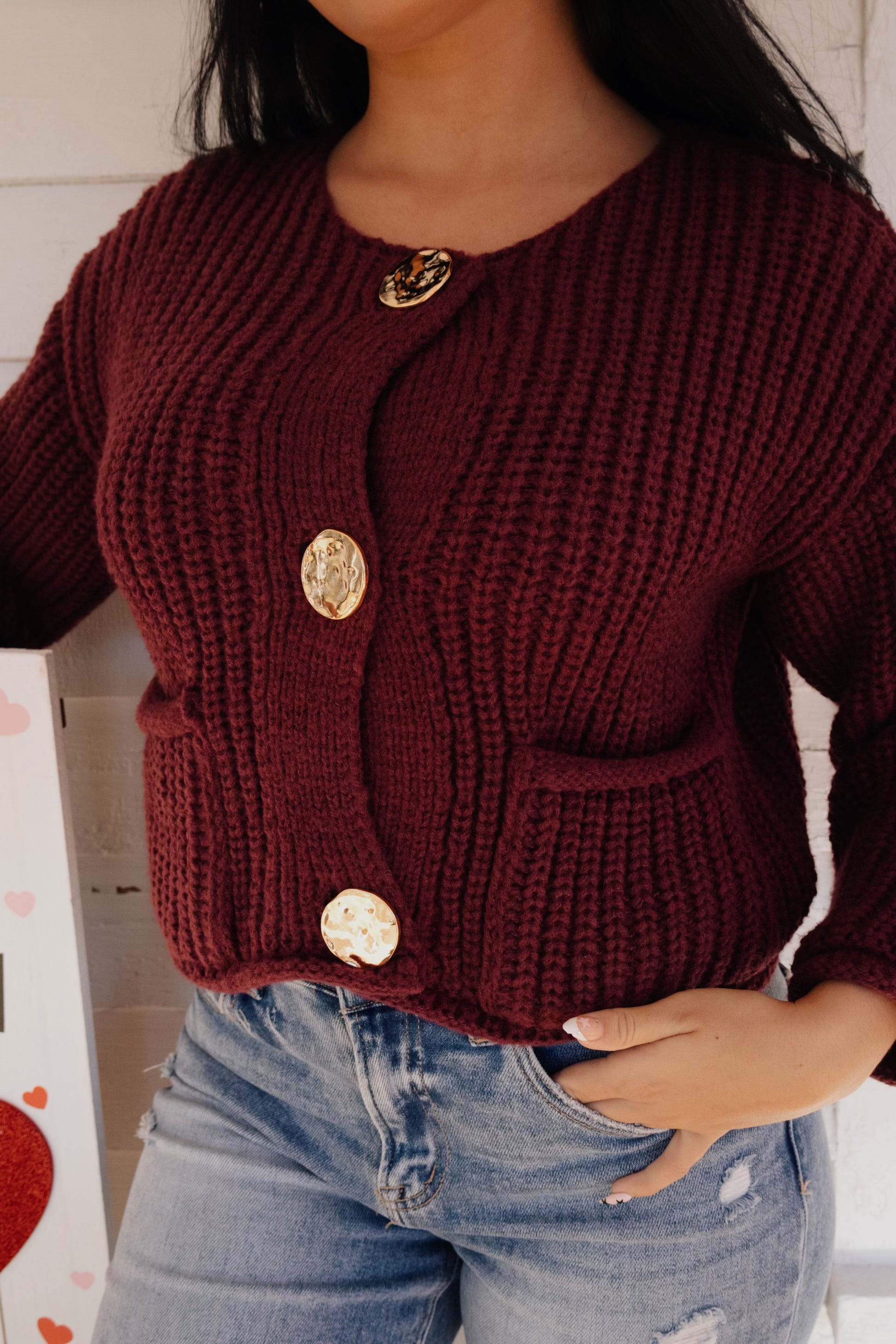 Solid Round Neck Crop Sweater Jacket w/ Front Pockets