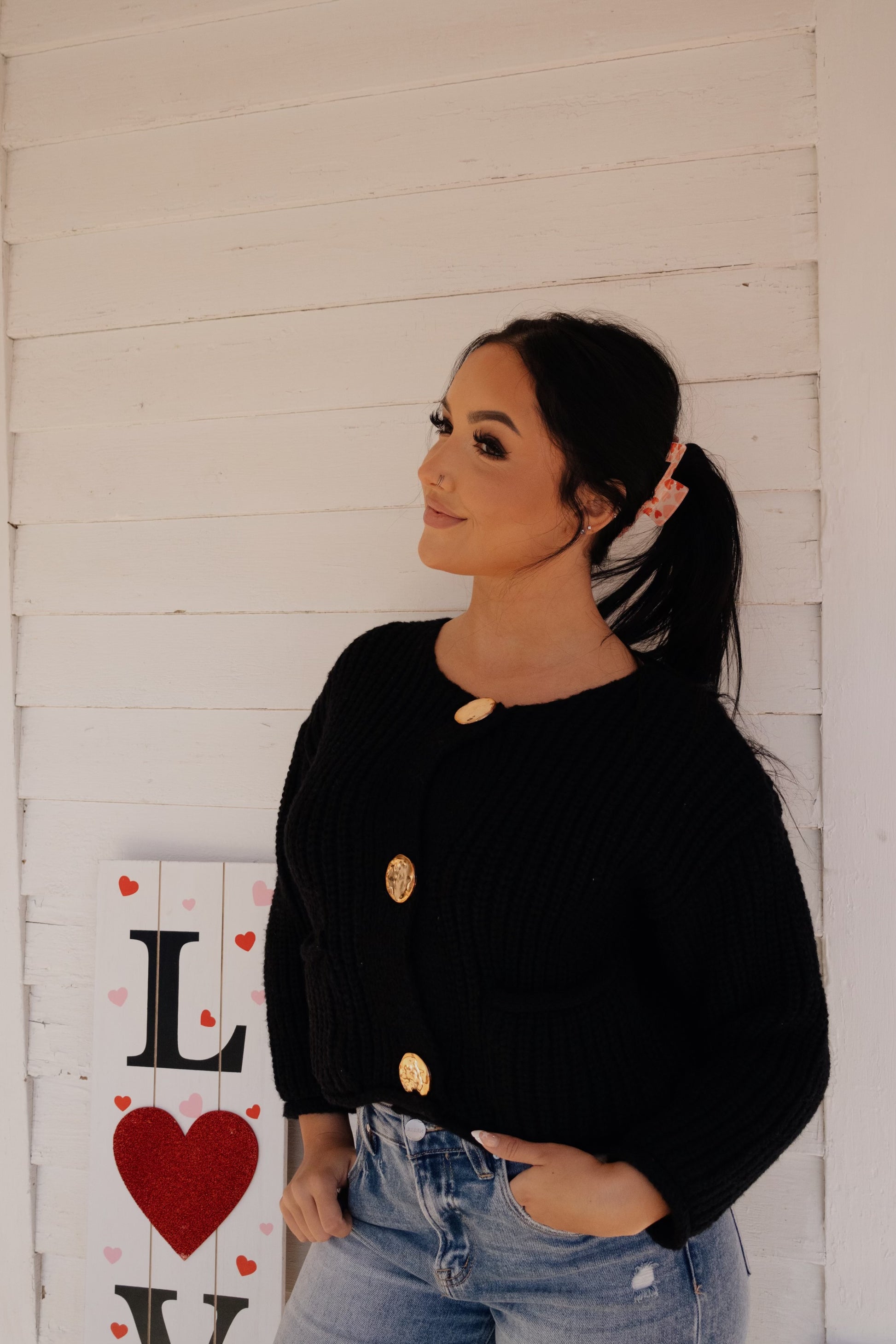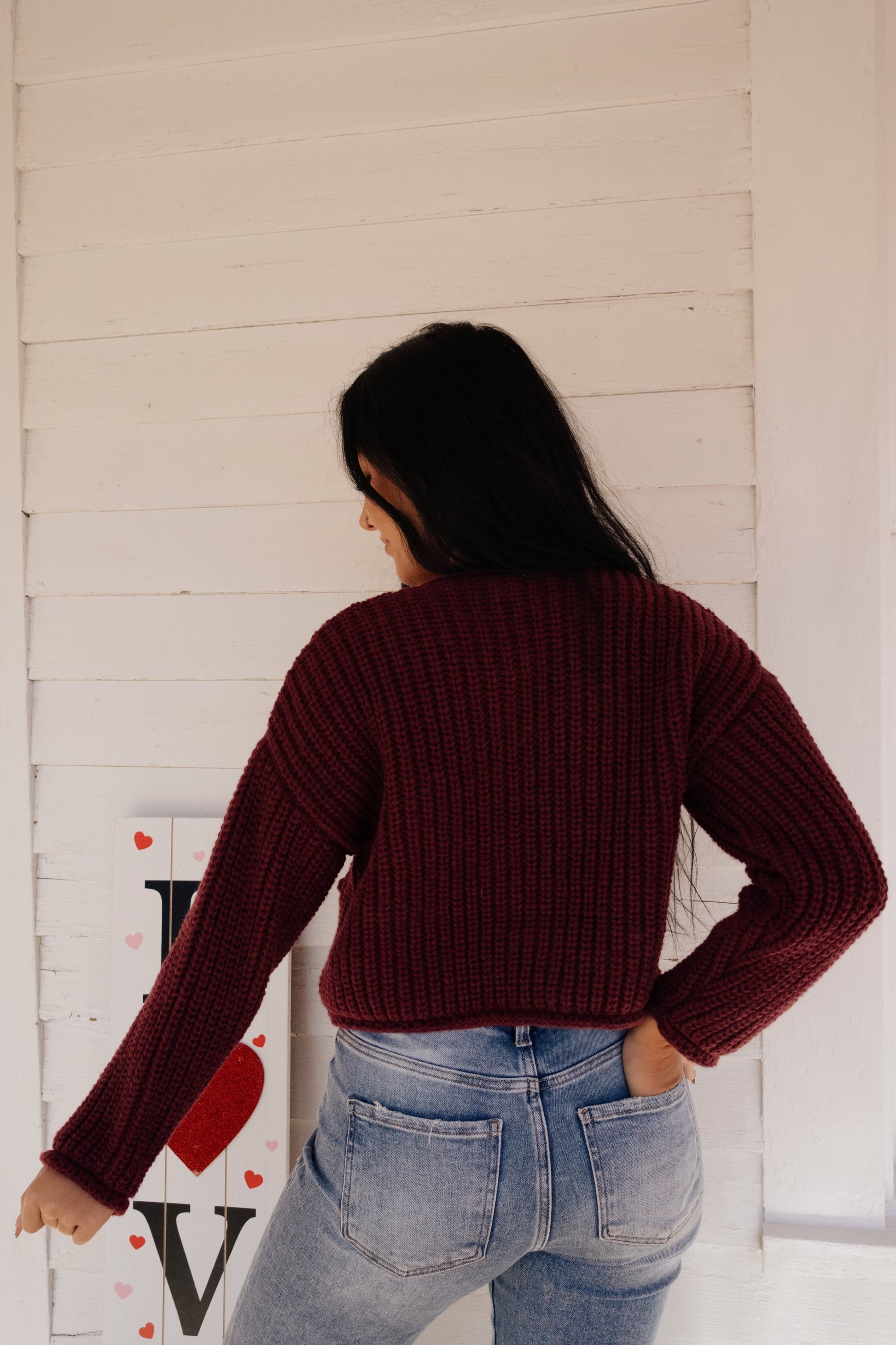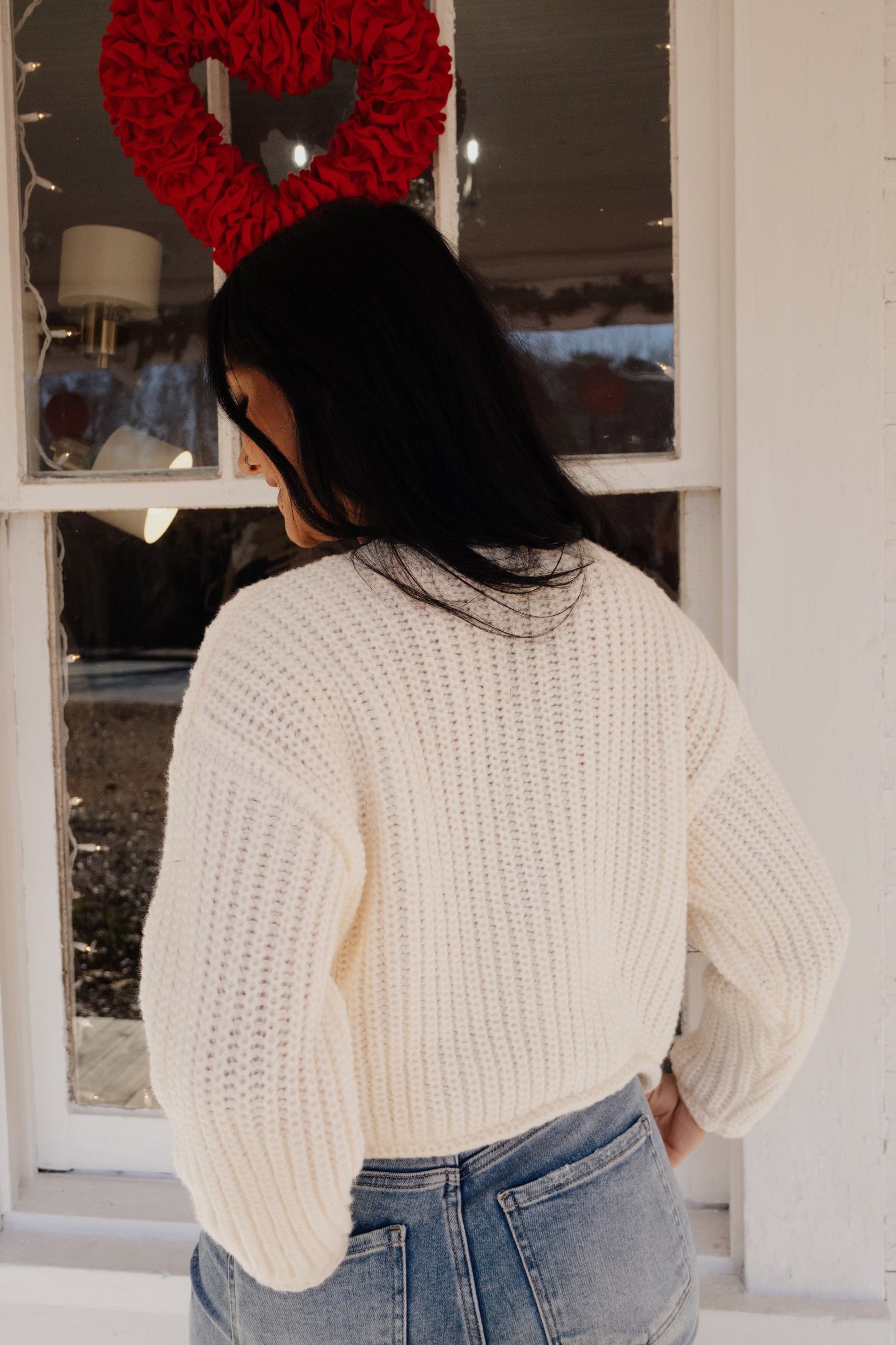 Solid Round Neck Crop Sweater Jacket w/ Front Pockets