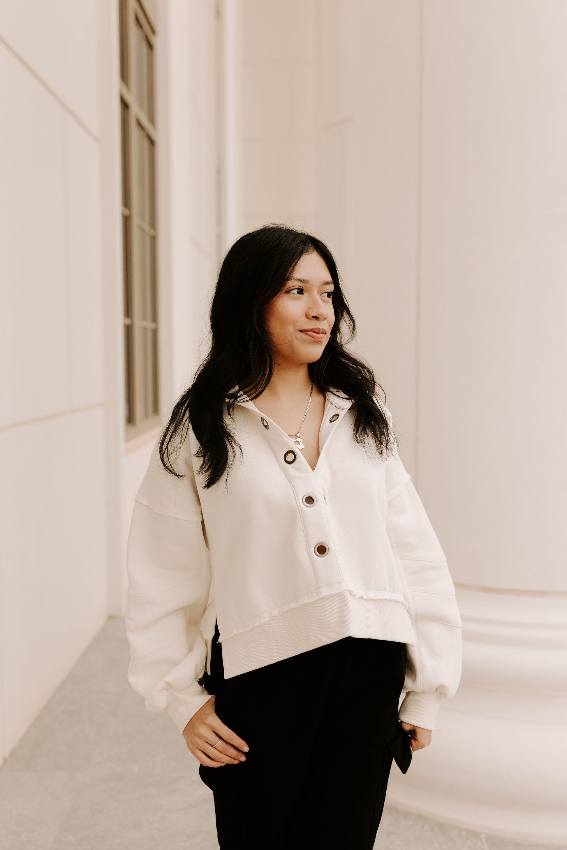White Popover w/ Balloon Sleeves & Metal Eyelets