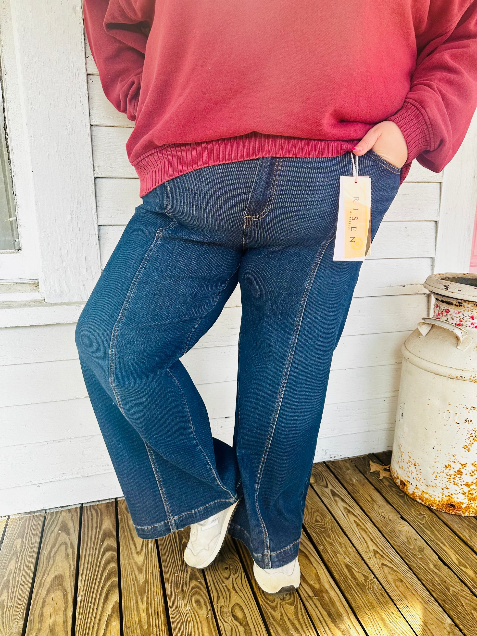 Mid Rise Crop Wide Front Seamed Detailed Jeans