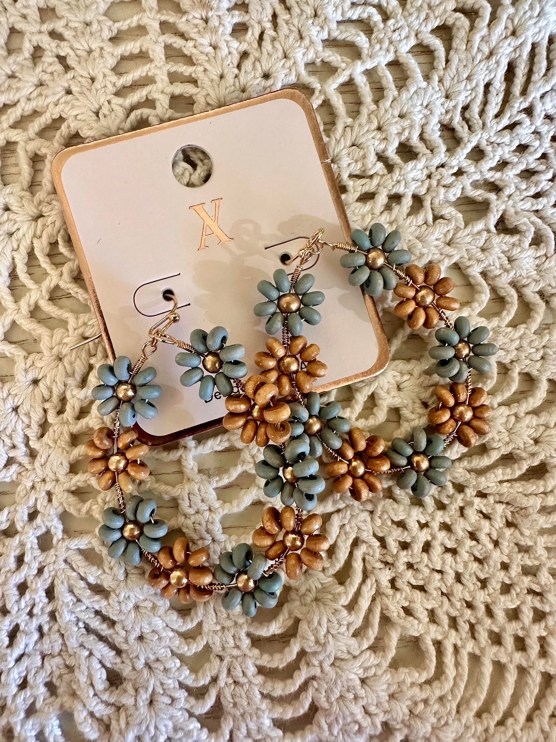 Brown & Baby Blue Rustic + Trendsetter Flower Earrings