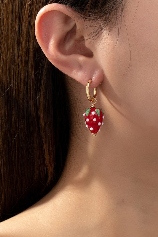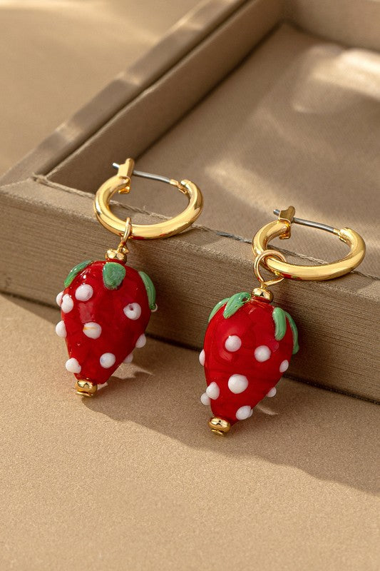 Huggie w/ Glazed Glass Strawberry Drop Fruit