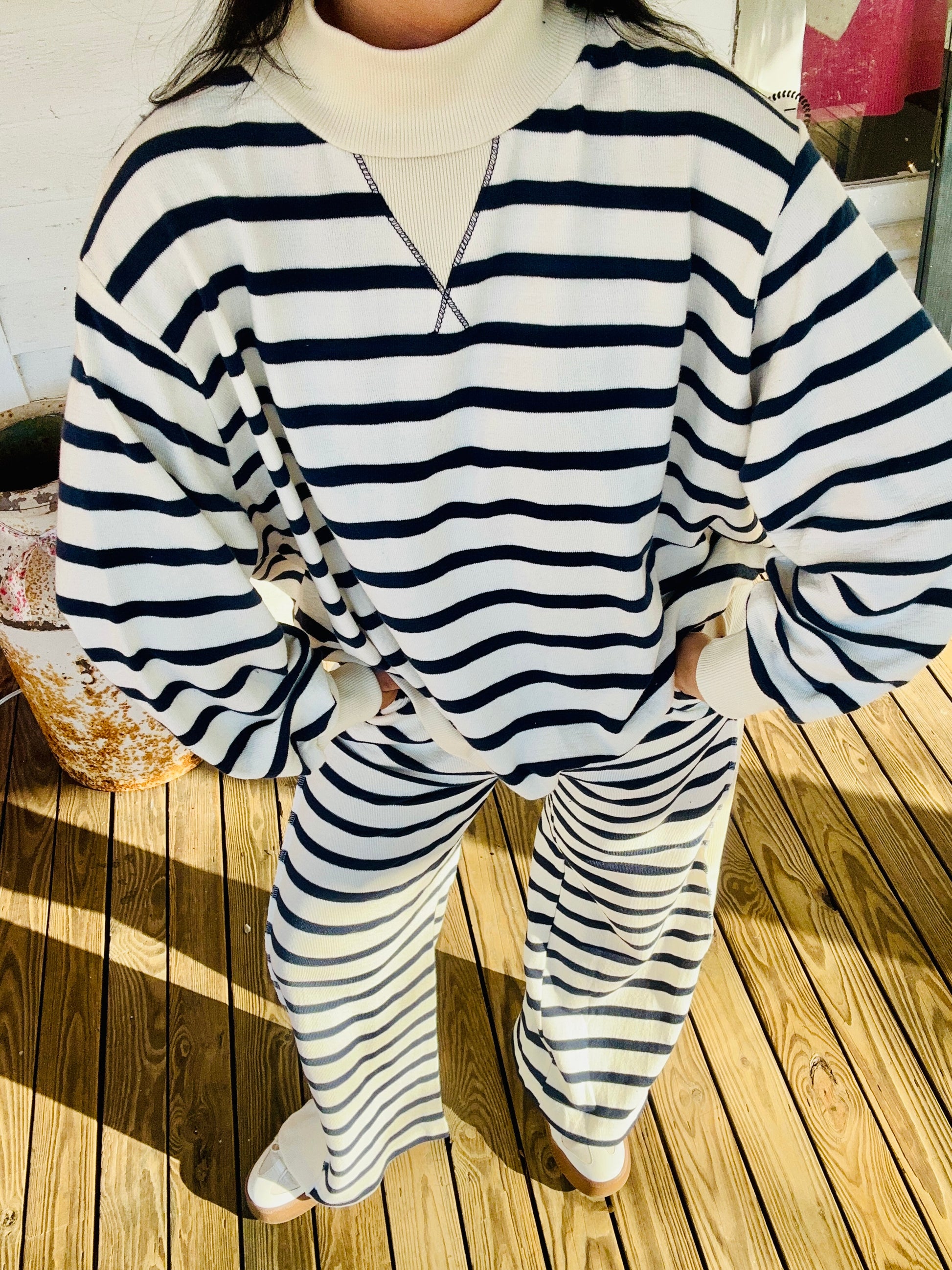 Navy & Cream Striped Mock Neck